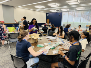 While Esha studies in Atlanta, Shreyaa, who recently completed her master’s at Georgetown, leads in-person programs in Virginia. Esha frequently travels back to help coordinate large-scale service projects and community resource distributions that serve more than 200 families. She even practices her Spanish every week to better connect with those she serves. “Meeting people where they are matters,” she says.
